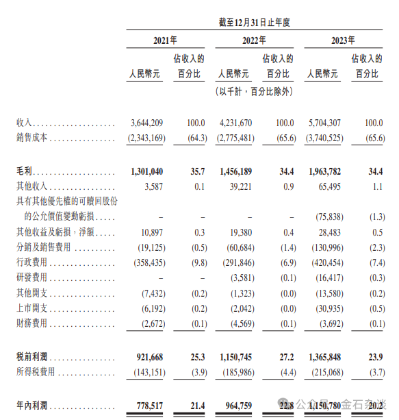 1)固然杀青盈利,但盈利水平着落。跟着阛阓糜掷左迁及新型茶饮竞争加重,茶百谈盈利智力鄙人降,毛利率从21年的35.7%降至23年的34.4%,净利率则降至20.2%。不外,好音问是茶百谈执续处于盈利情状,2021年至2023年公司分裂盈利7.79亿、9.65亿以及11.51亿。
