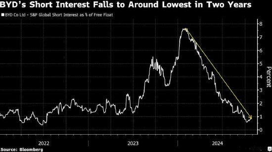 跟着中国电动汽车制造商比亚迪有望公布有史以来第一次逾越特斯拉的季度营收,投资者正在削减对这只股票的空头押注。