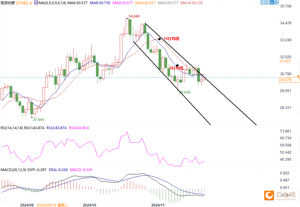 联系词,14日RSI当今低于50,标明市集情谊照旧看空。此外,银价仍在14日和9日均线下方,这标明短期内市集看空情谊未改,买盘趣味趣味疲弱,可能会导致银价进一步着落。